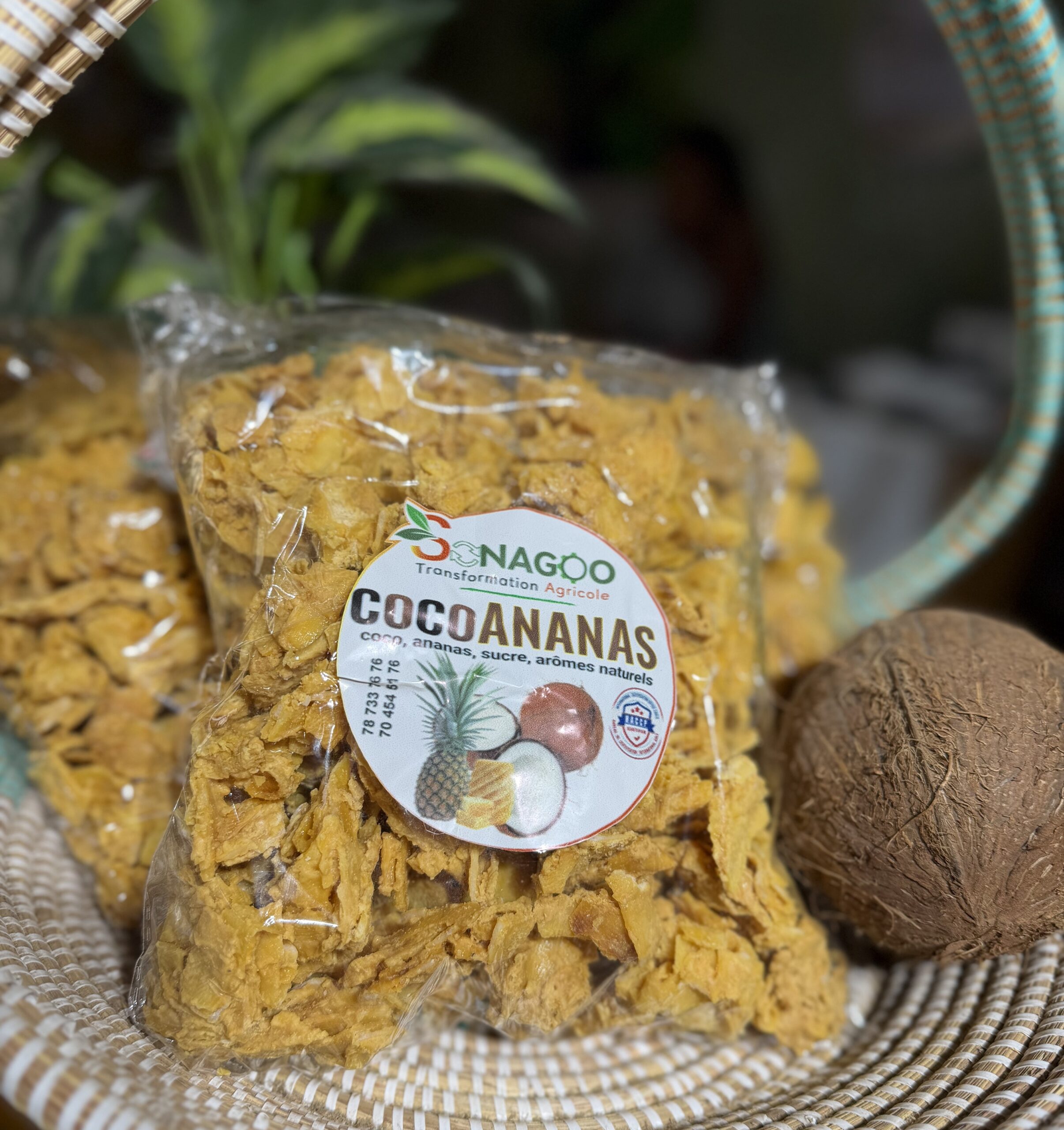 Le Coco Ananas est une fusion unique et harmonieuse de la douceur tropicale du coco et de la saveur d’ananas. Ce mélange original est parfait pour ajouter une touche audacieuse à vos desserts, boissons ou collations. Sa saveur équilibrée en fait un choix idéal pour les amateurs de goûts authentiques et irrésistible. Disponible en sachets de 50g à 500 FCFA , de 100g à 1 000 FCFA, de 500g à 3500 FCFA et de KG à 7000 FCFA chaque portion est soigneusement emballée pour garantir une fraîcheur et une qualité optimales. Faites l’expérience d’une explosion de saveurs avec Coco Ananas, un incontournable pour les palais curieux !