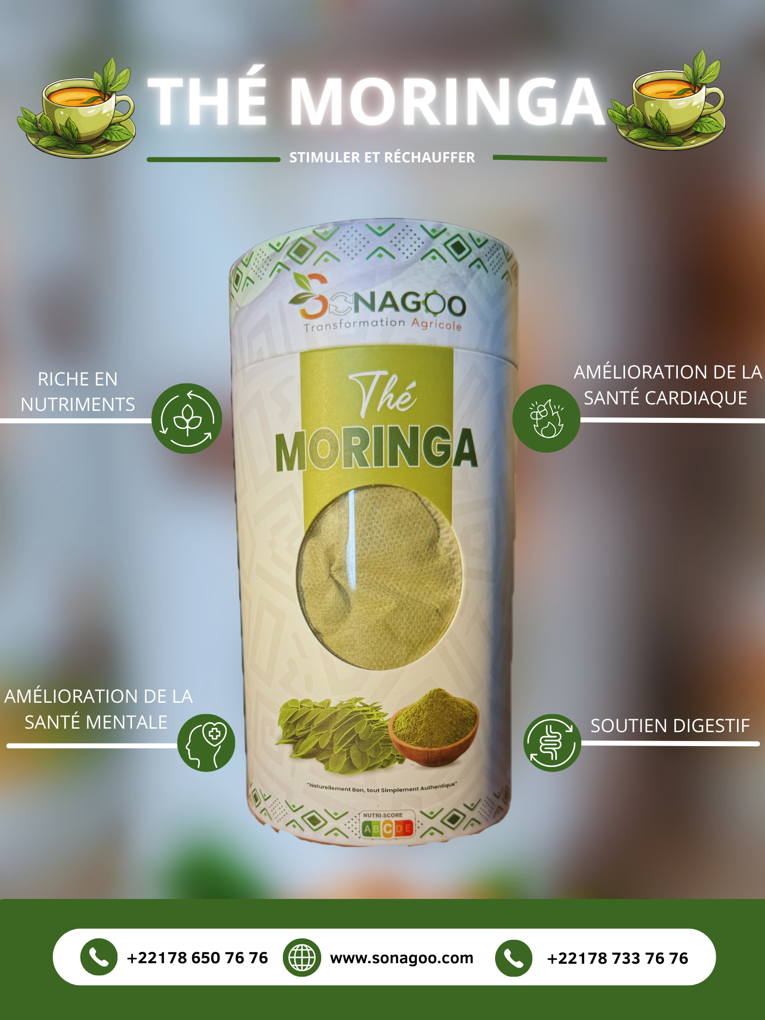 Découvrez le Thé Moringa, une infusion aux multiples bienfaits naturels qui apporte une énergie douce et durable. Ce thé est parfait pour revitaliser l’organisme et accompagner vos journées actives. En pack de 15 sachets, il est idéal pour savourer la fraîcheur et les bienfaits du moringa quotidiennement. Prix : 3 500 FCFA le pack de 17 pièces.